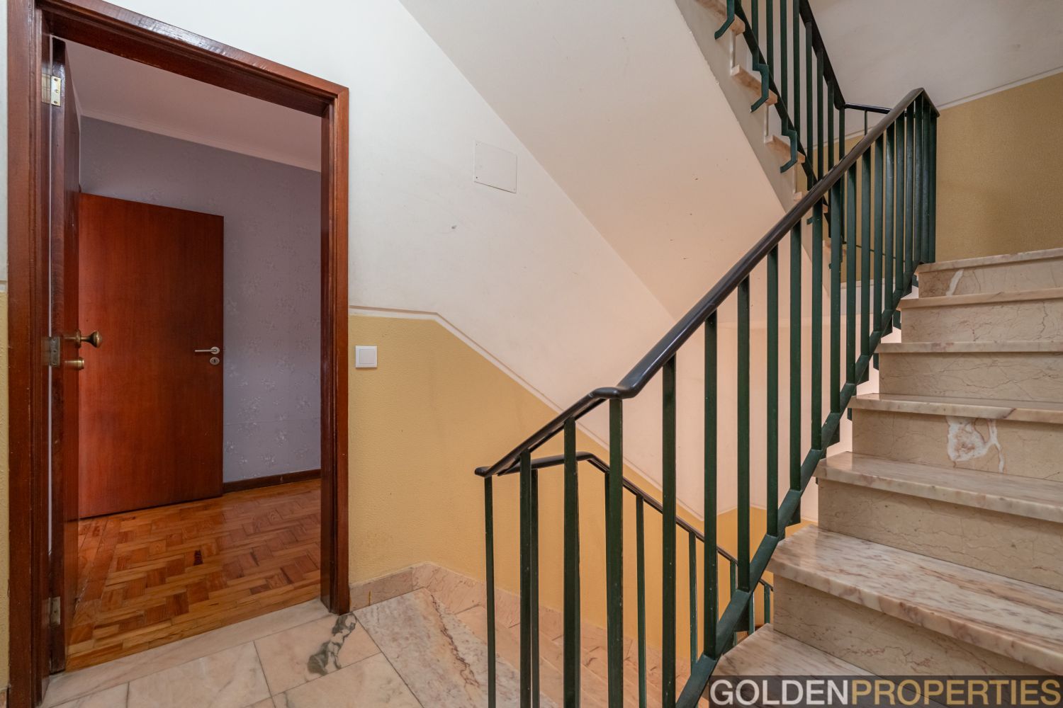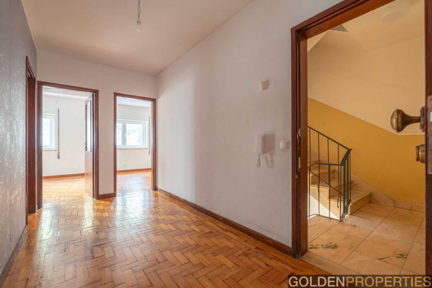 Localizado no 1.º andar, com 110 m² de área bruta, é composto por: hall de entrada, sala, cozinha, três quartos, duas casas de banho e duas varandas. Inclui ainda uma arrecadação com 2 m² no logradouro.